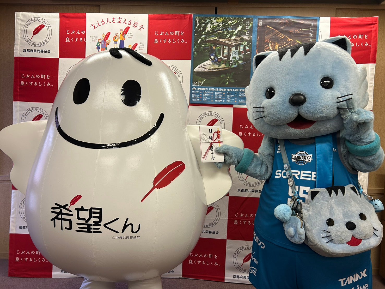 京都ハンナリーズでは、8月29日、30日に梅小路公園で開催した「オール京都の夏祭り」の売り上げの一部を京都府共同募金会へ寄付いたしました。