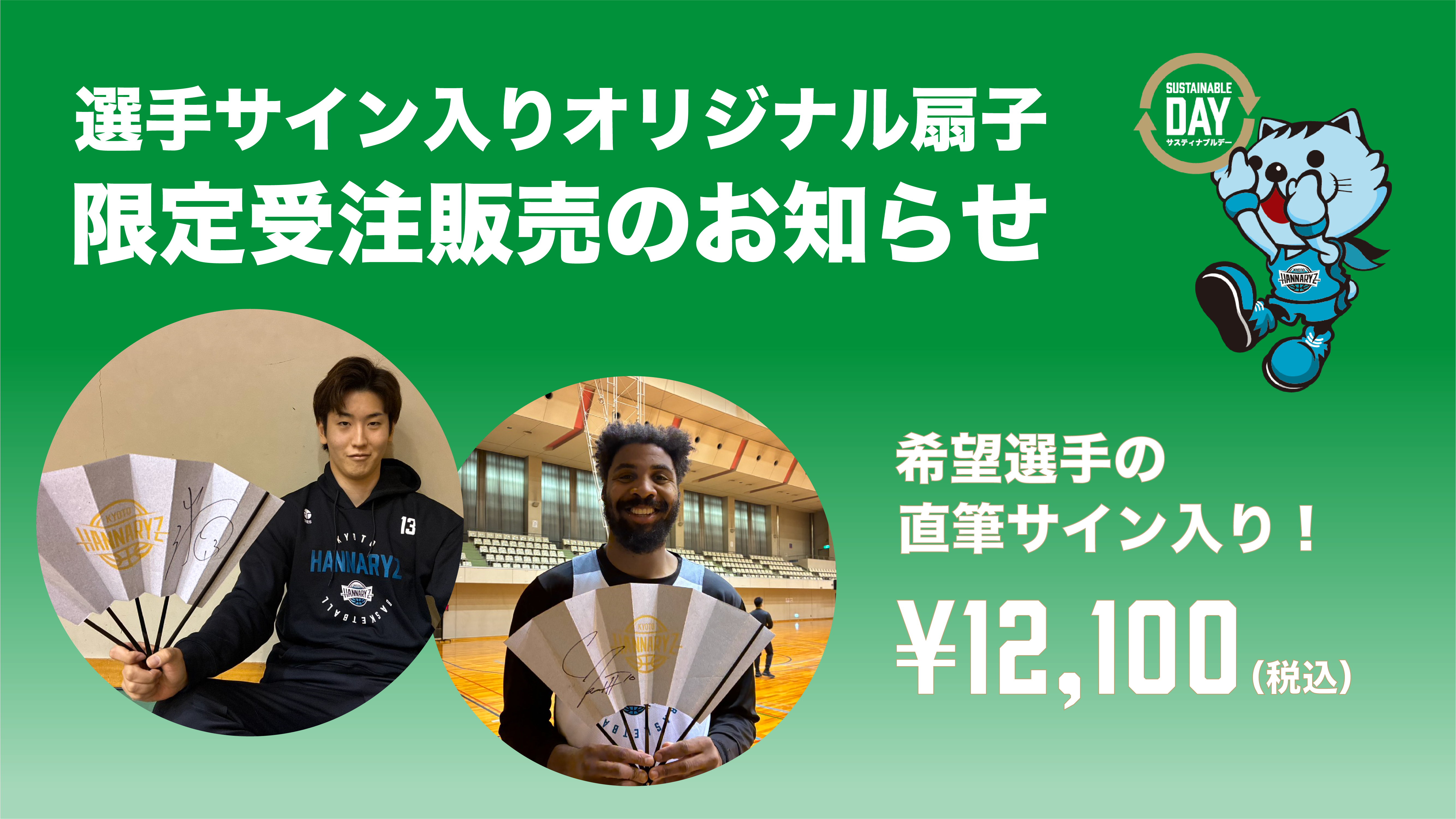 完成した扇子は受注販売限定で、ご希望の京都ハンナリーズ選手のサインを入れ、ここでしか手に入らない特別なグッズとしてお届けします。 環境への想い、京都の伝統工芸、そしてチームへの応援が一つになった、京都ハンナリーズならではのサステナブルグッズです。 日常の中で使いながら、資源循環や地域とのつながりを感じていただければ幸いです。