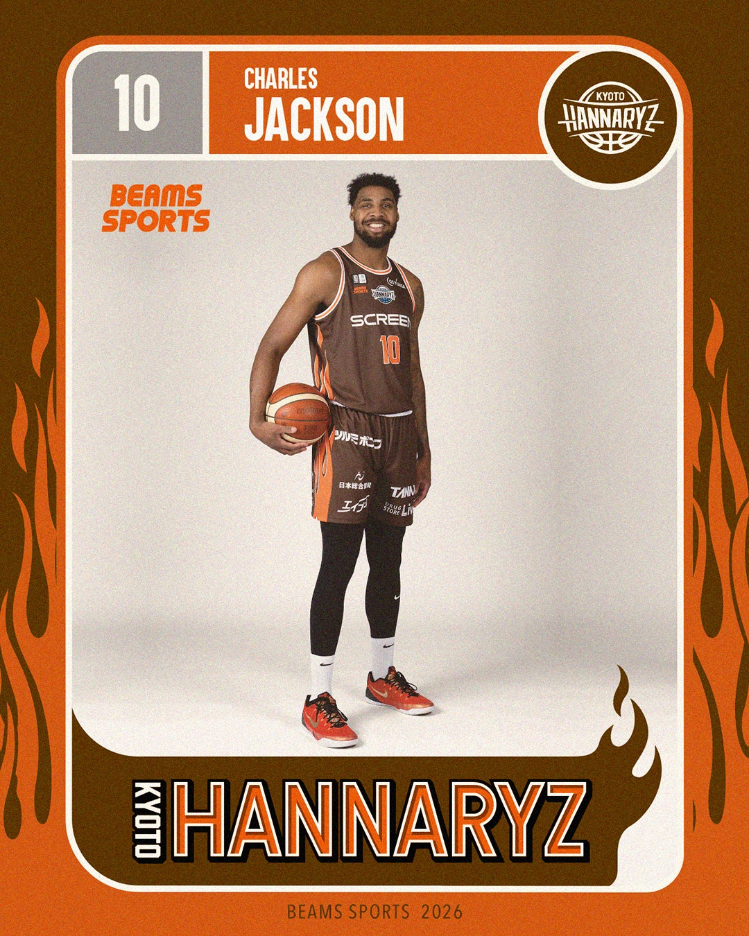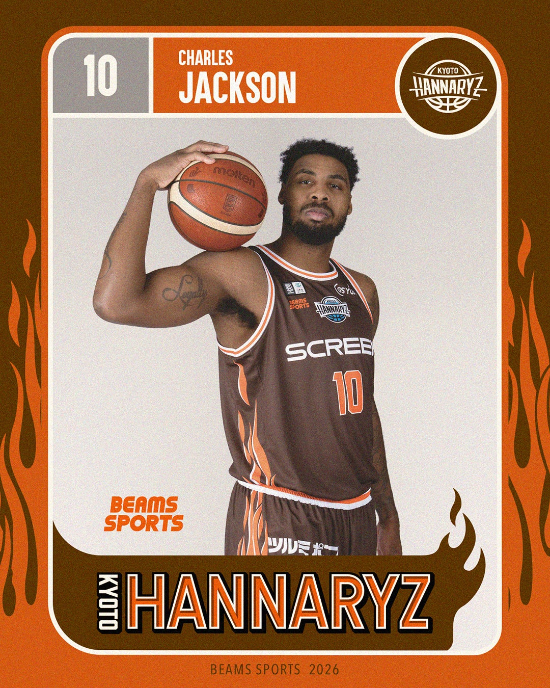 そこに、京都ハンナリーズの佇まいからインスパイアされた「静かに燃える闘志」を、〈BEAMS SPORTS〉のオレンジを添えて表現しました。