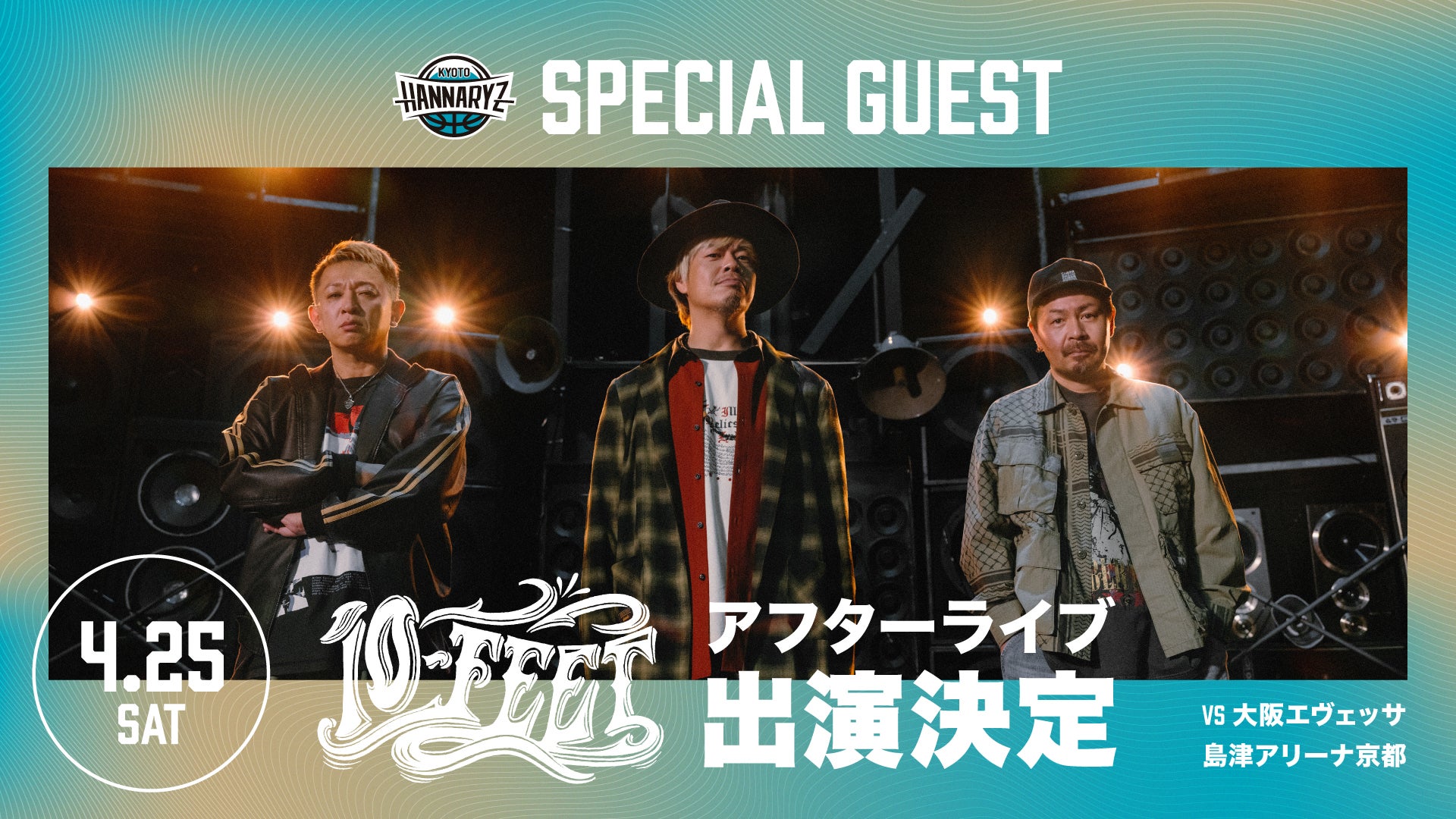 2026-27シーズンから始まる「B.PREMIER」への参入を控え、現リーグ制の一区切りとなる今シーズン。その締めくくりとなるホーム最終節、4月25日(土) 大阪エヴェッサ戦に、地元・京都が誇る3ピースバンド「10-FEET」の来場が決定いたしました。