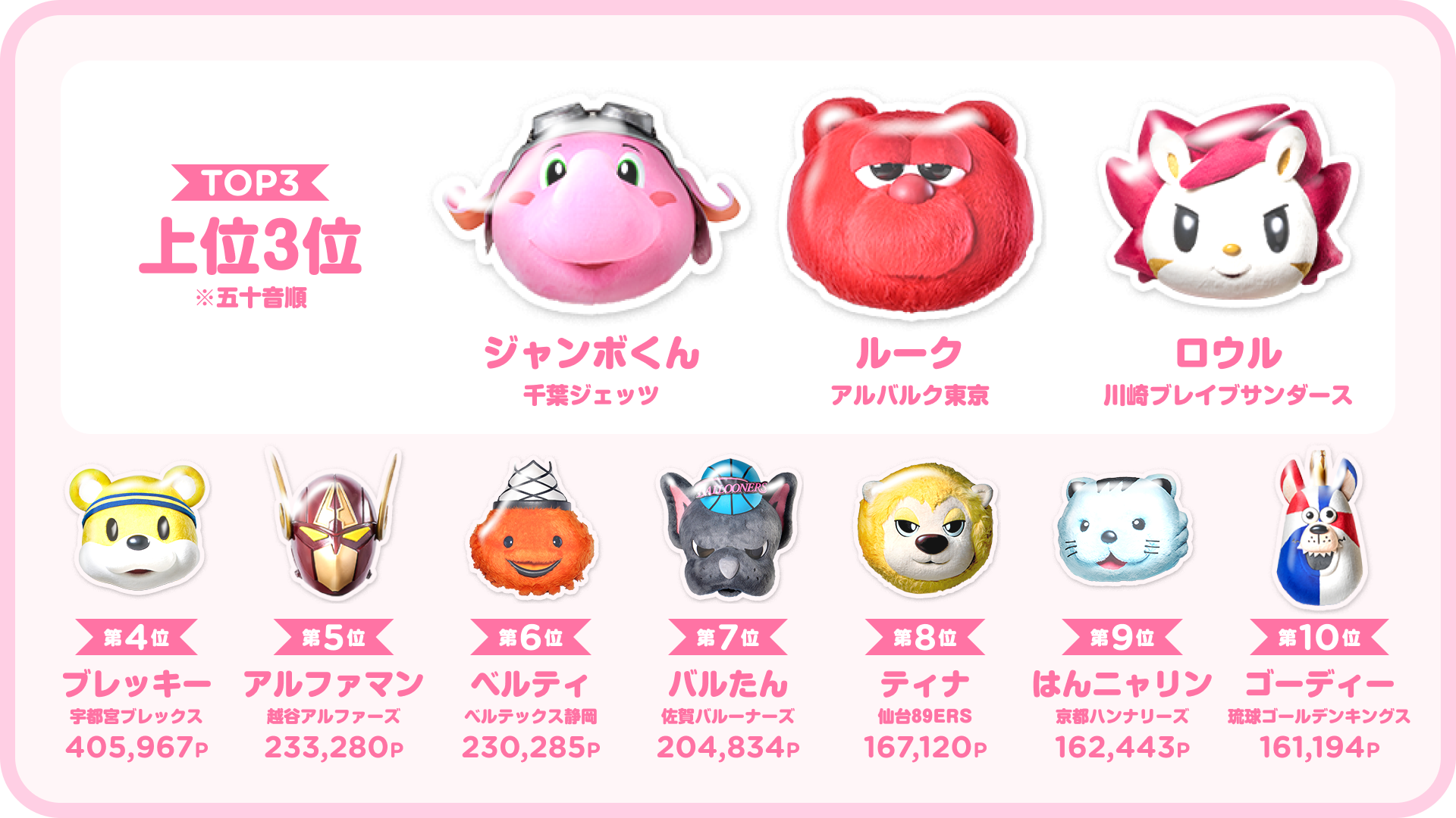 結果発表【B.LEAGUE MASCOT OF THE YEAR 2025-26】