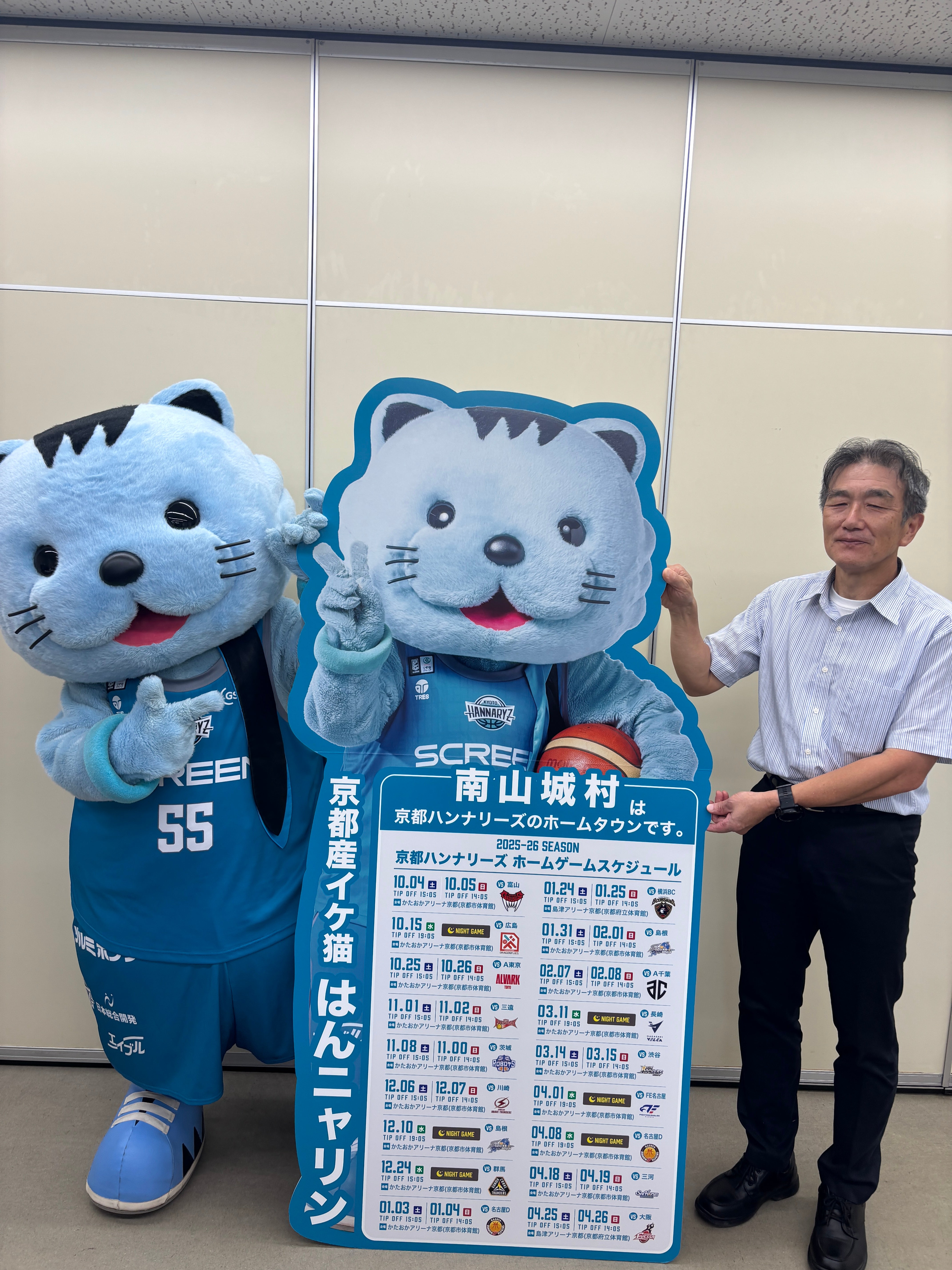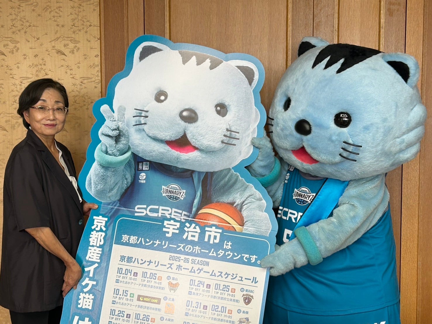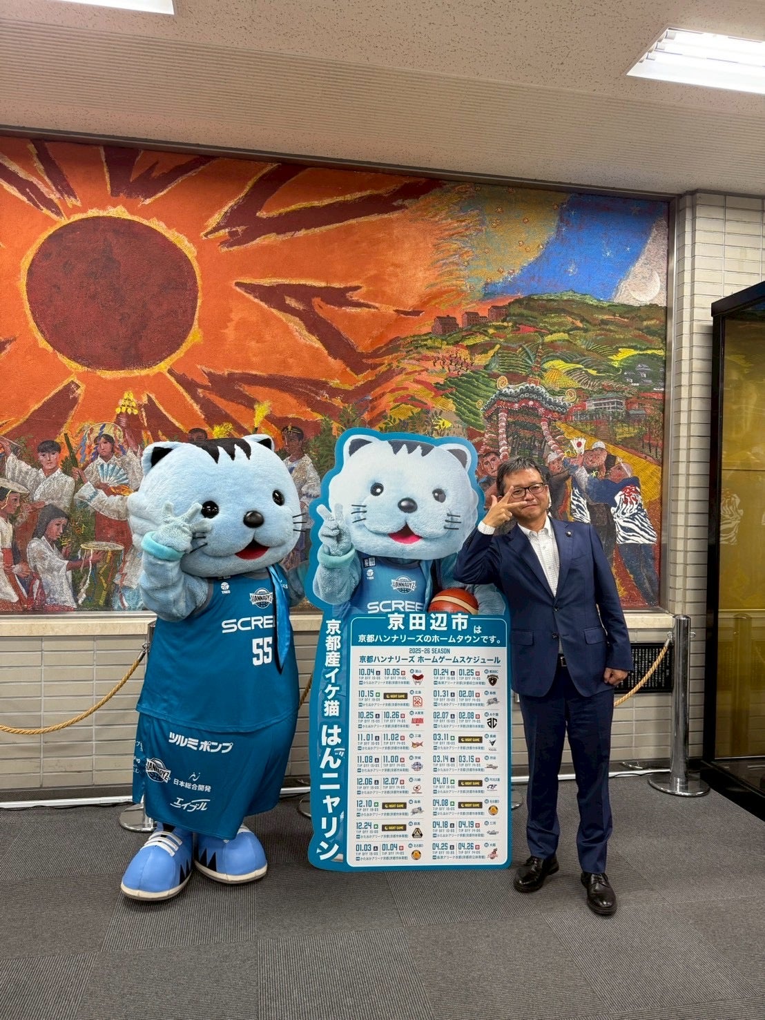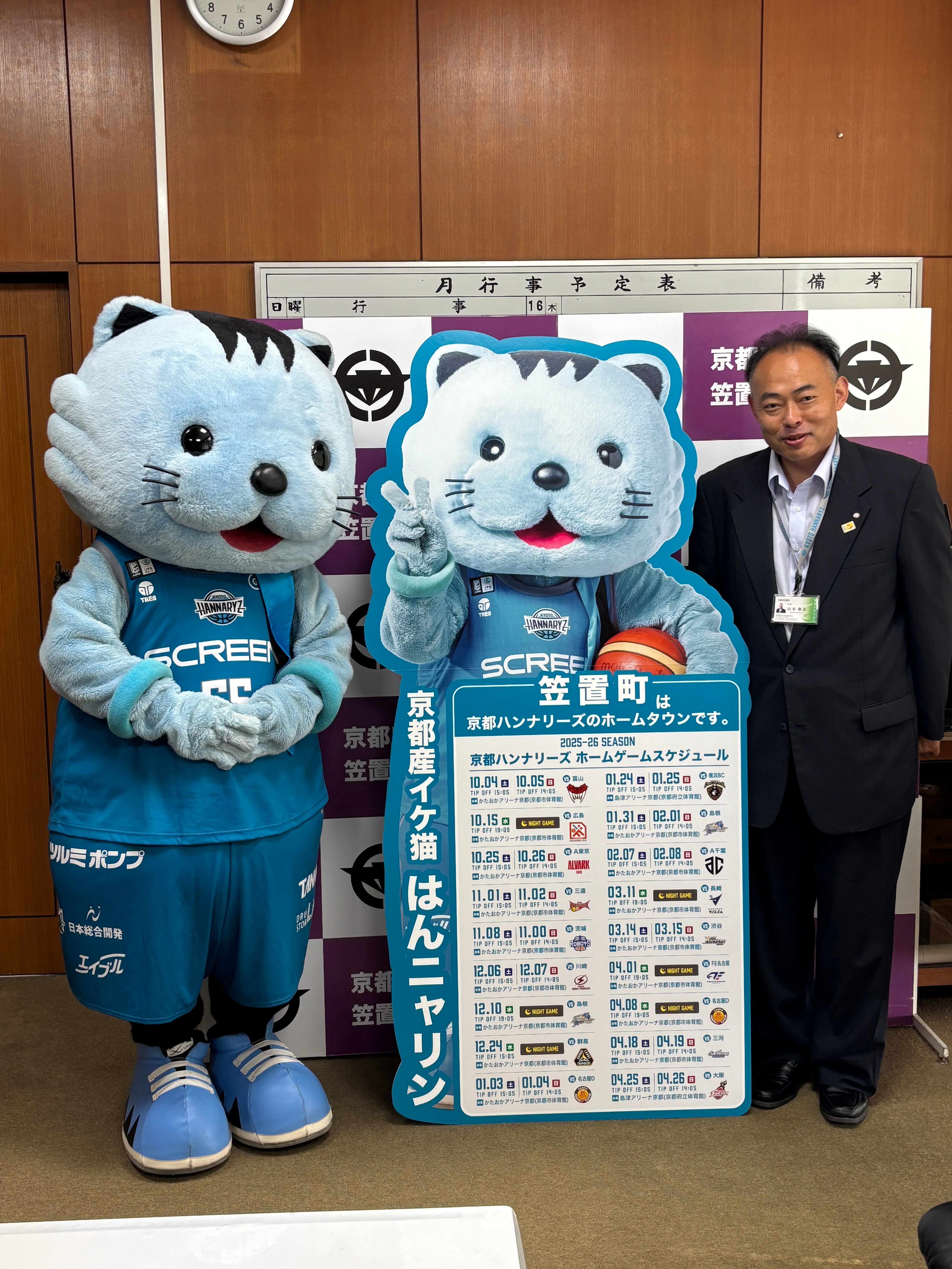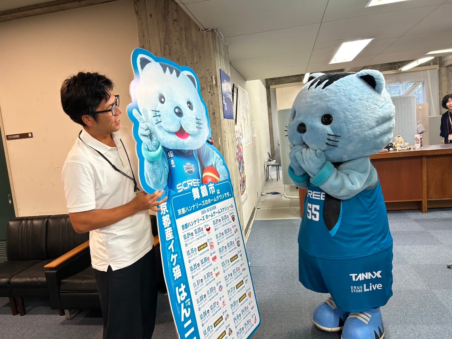 取り組みの一環として、京都ハンナリーズ公式マスコットキャラクター「 はんニャリン」 が各自治体の首長の皆様にご挨拶に伺いました。