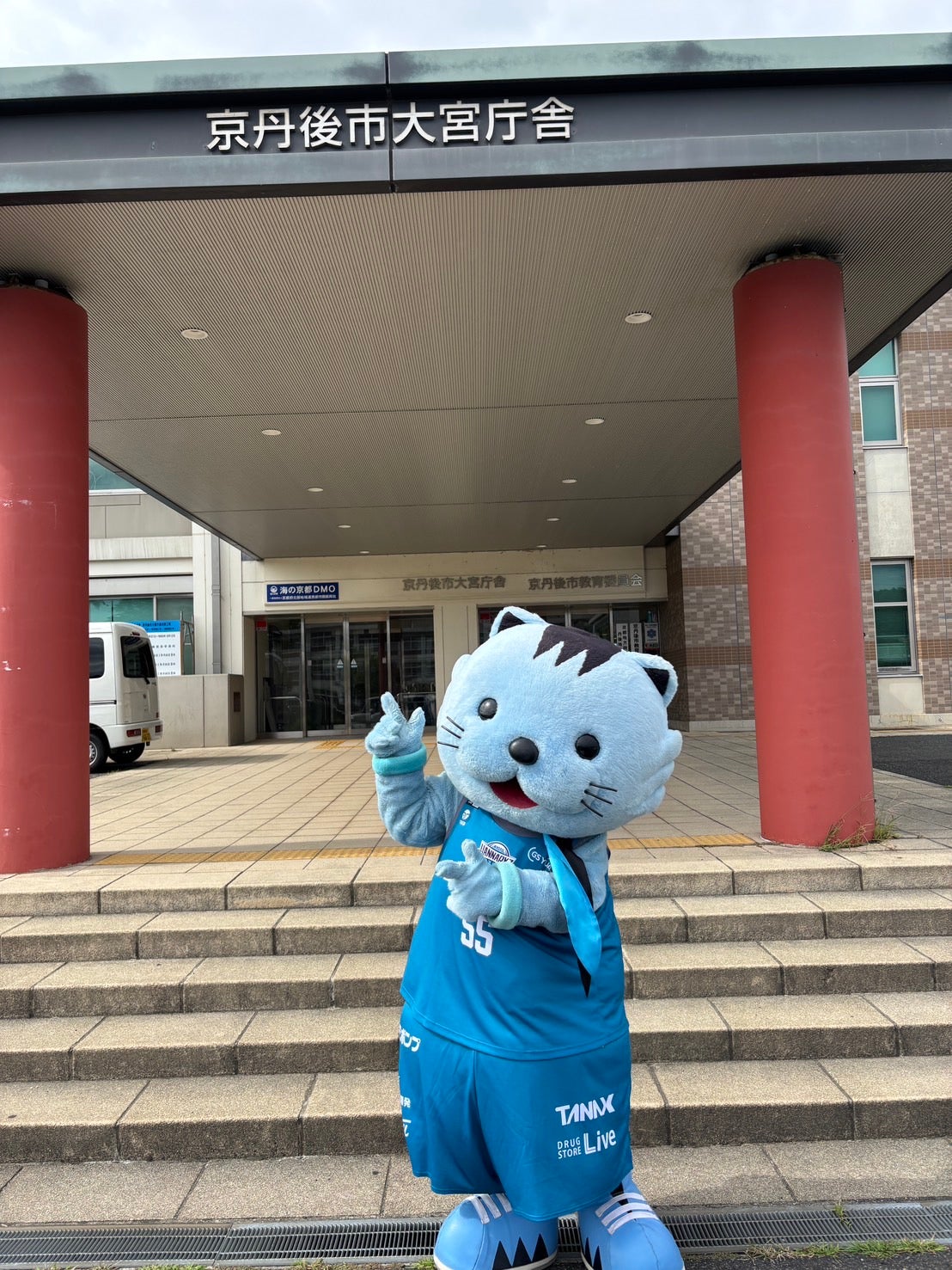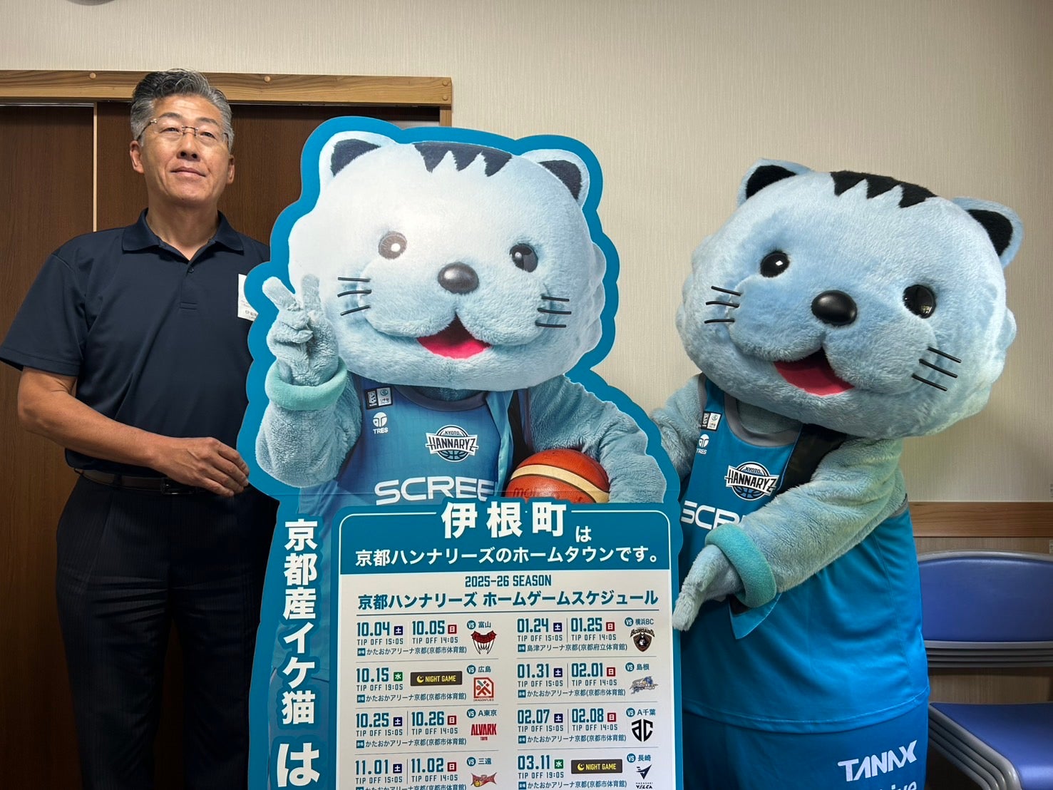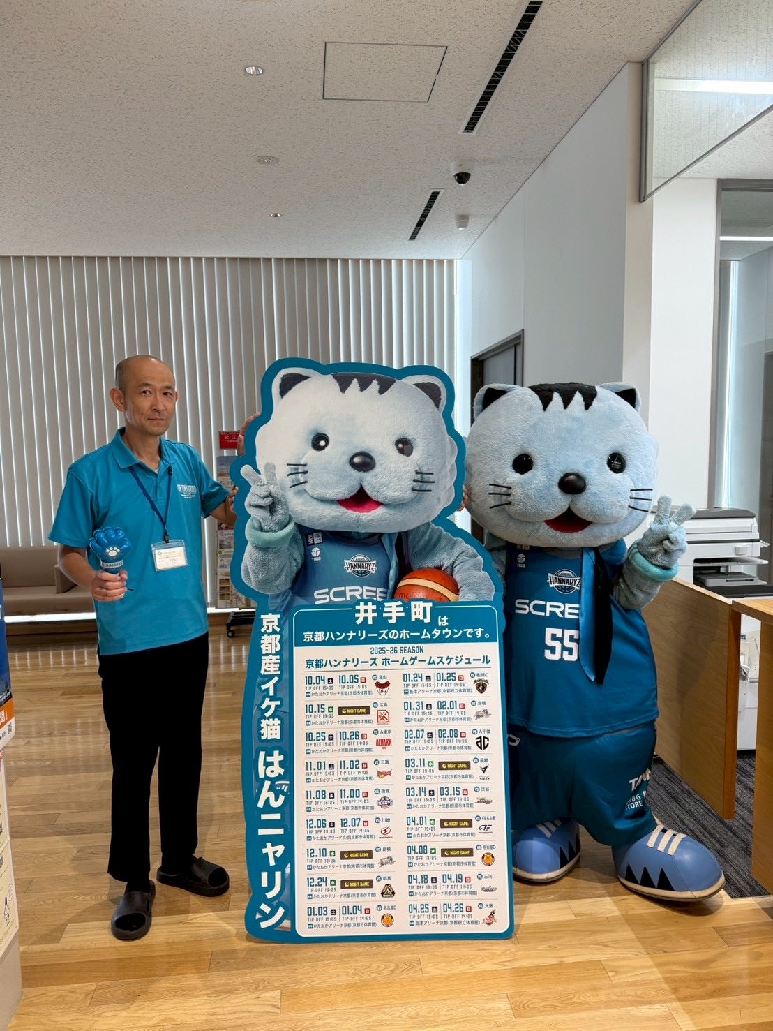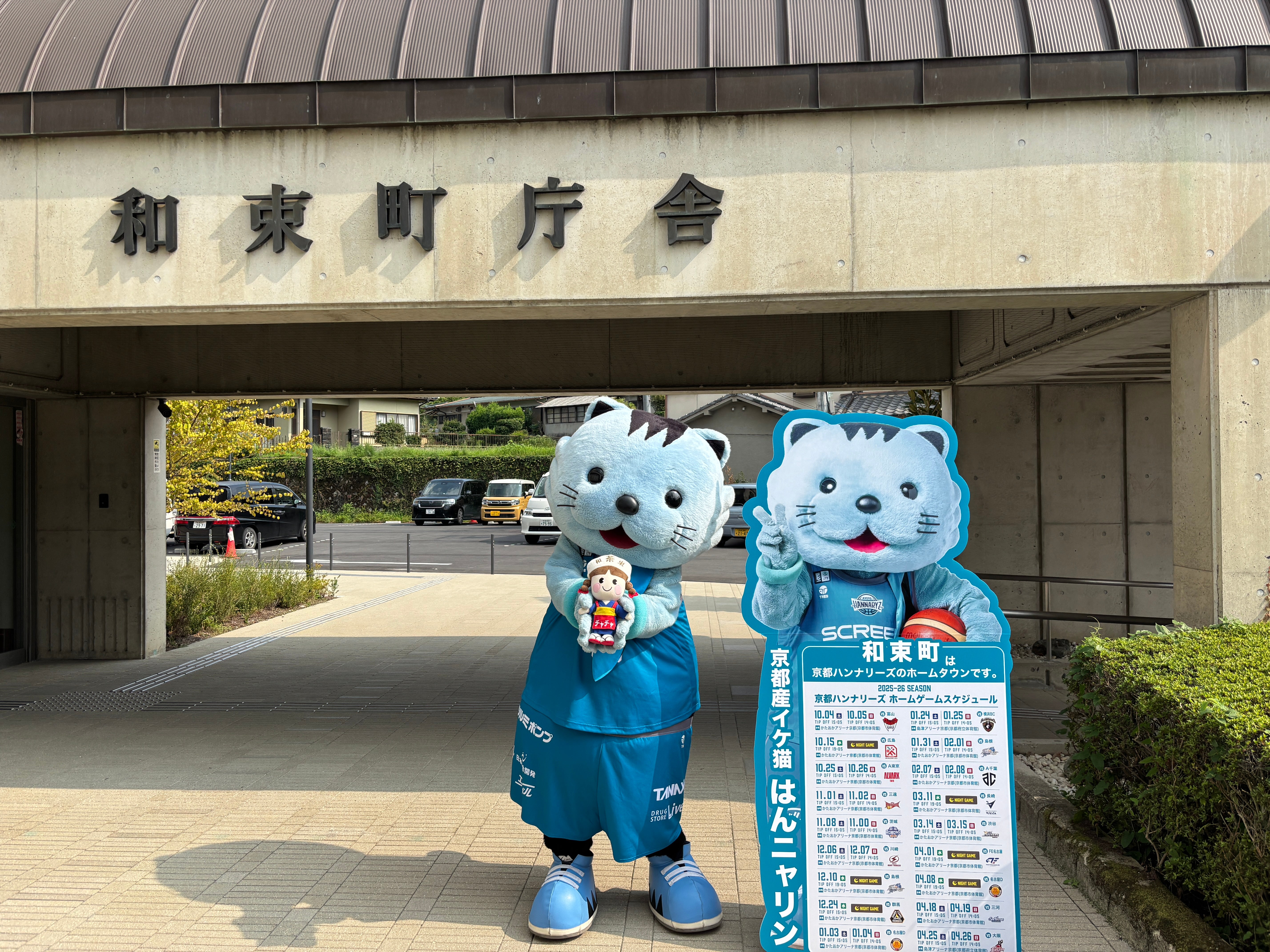 取り組みの一環として、京都ハンナリーズ公式マスコットキャラクター「 はんニャリン」 が各自治体の首長の皆様にご挨拶に伺いました。