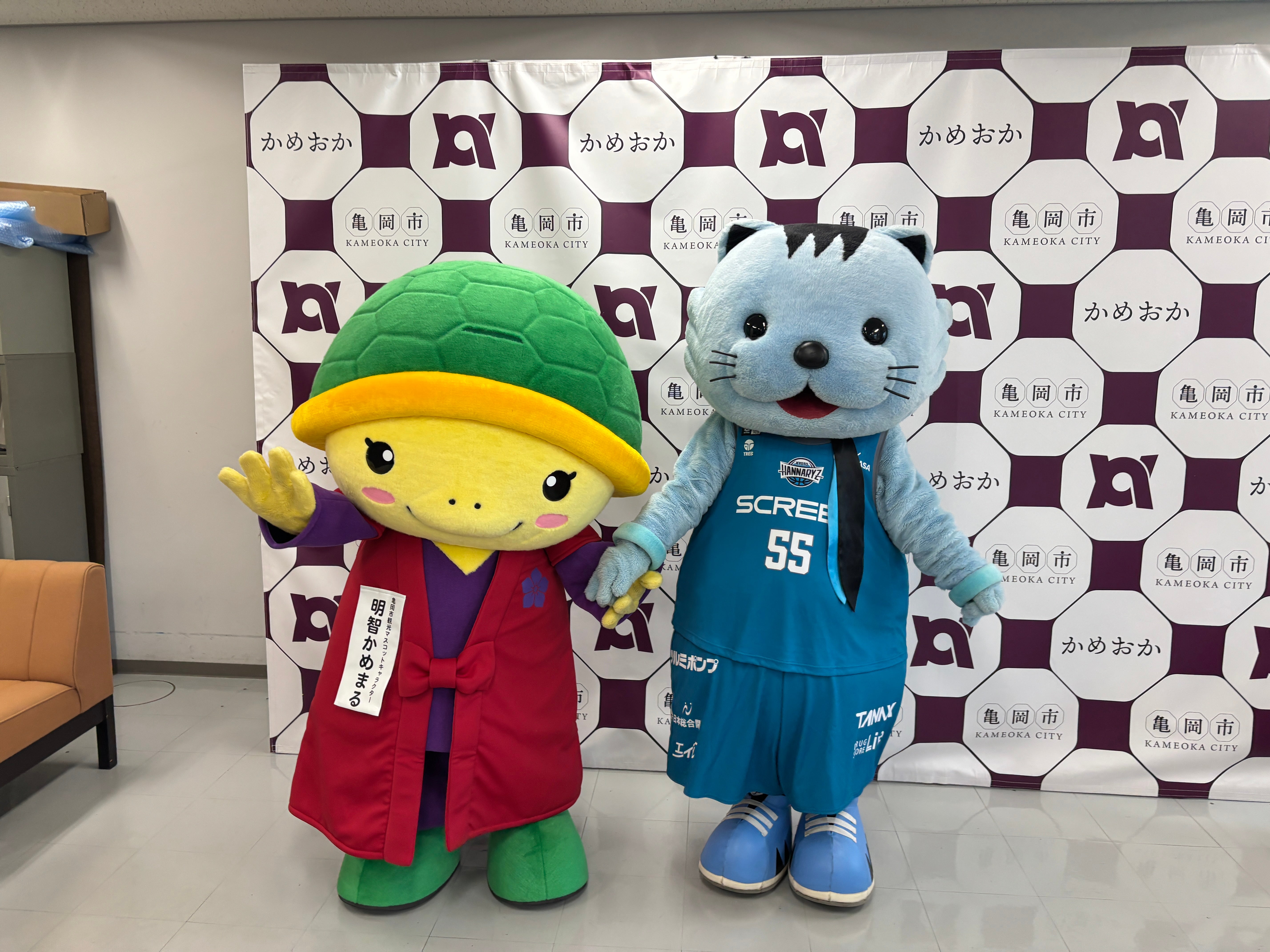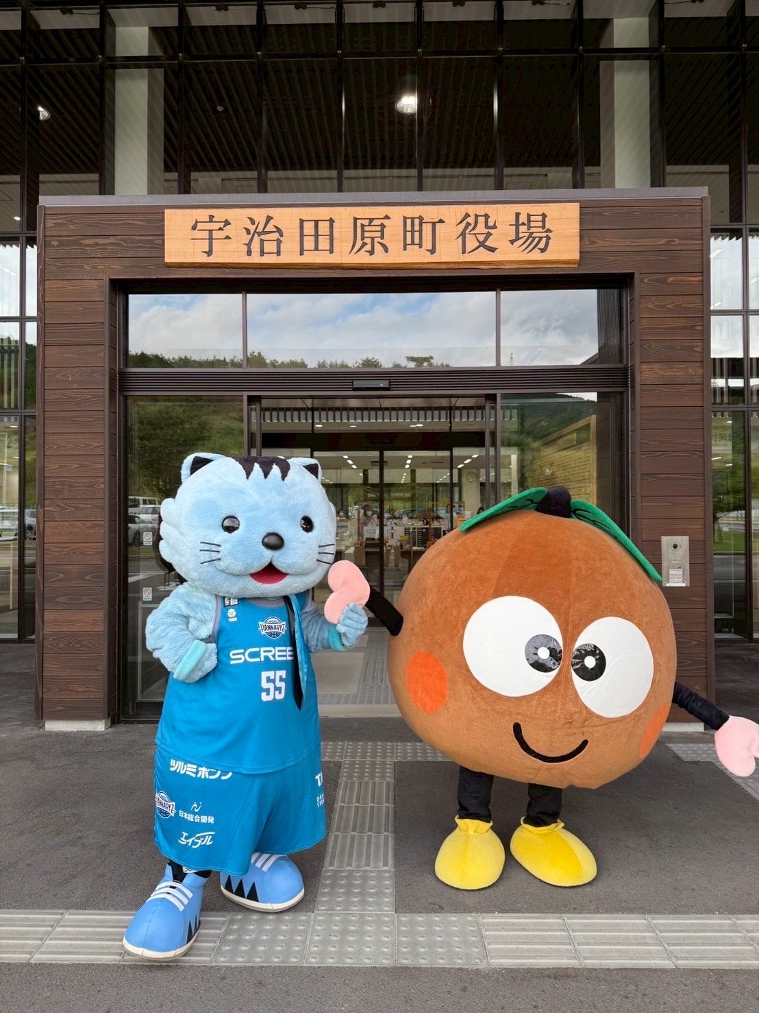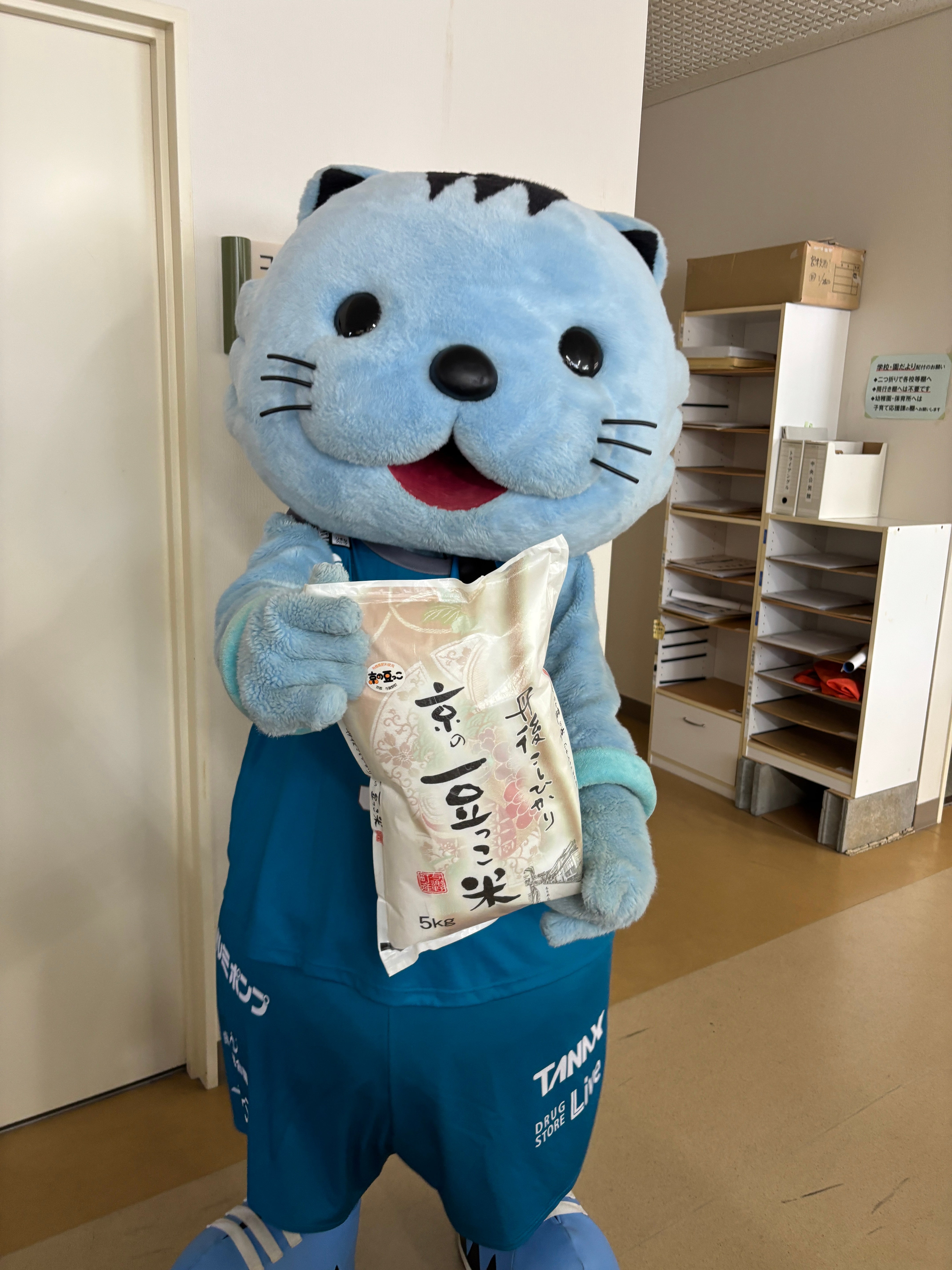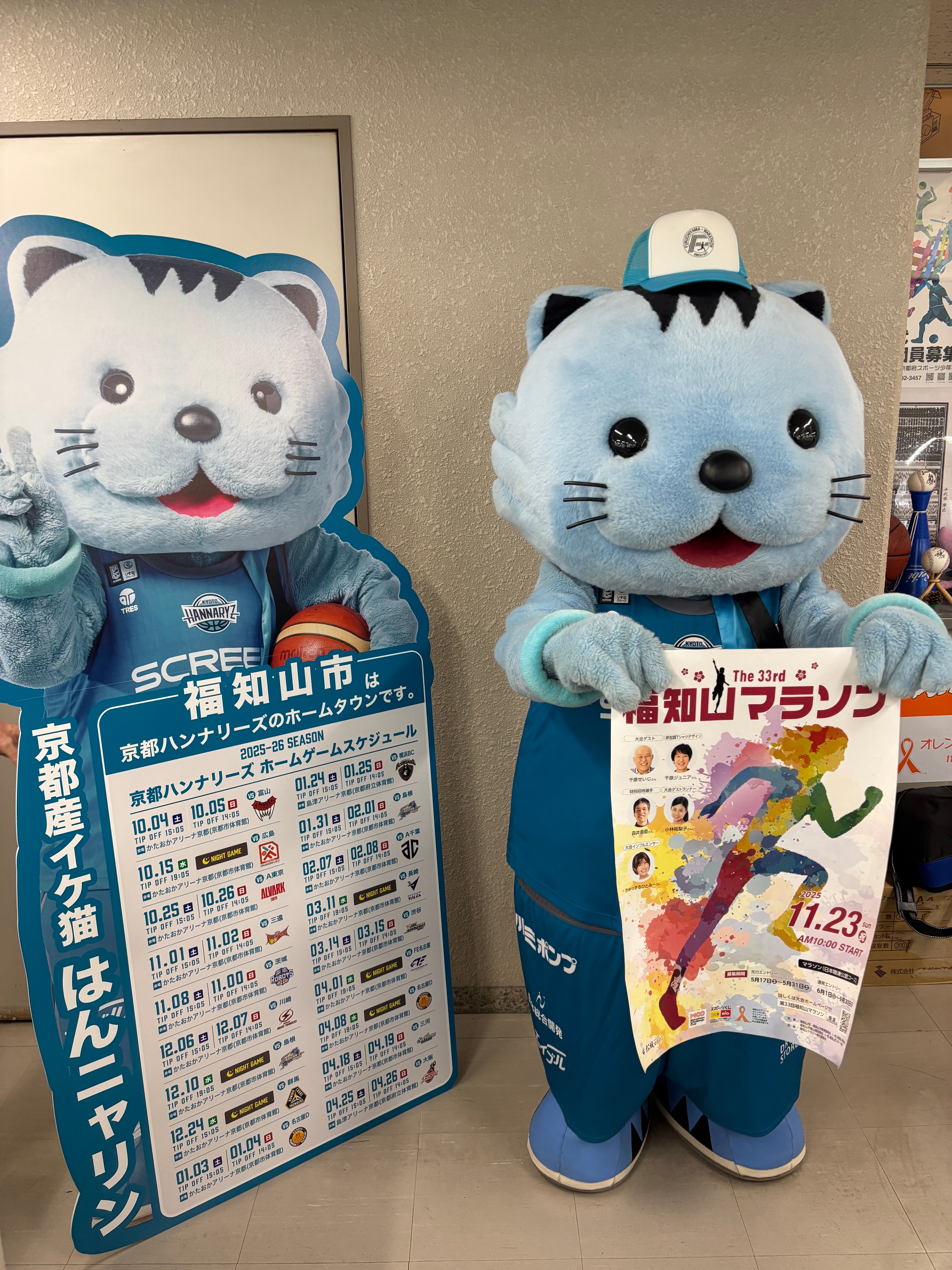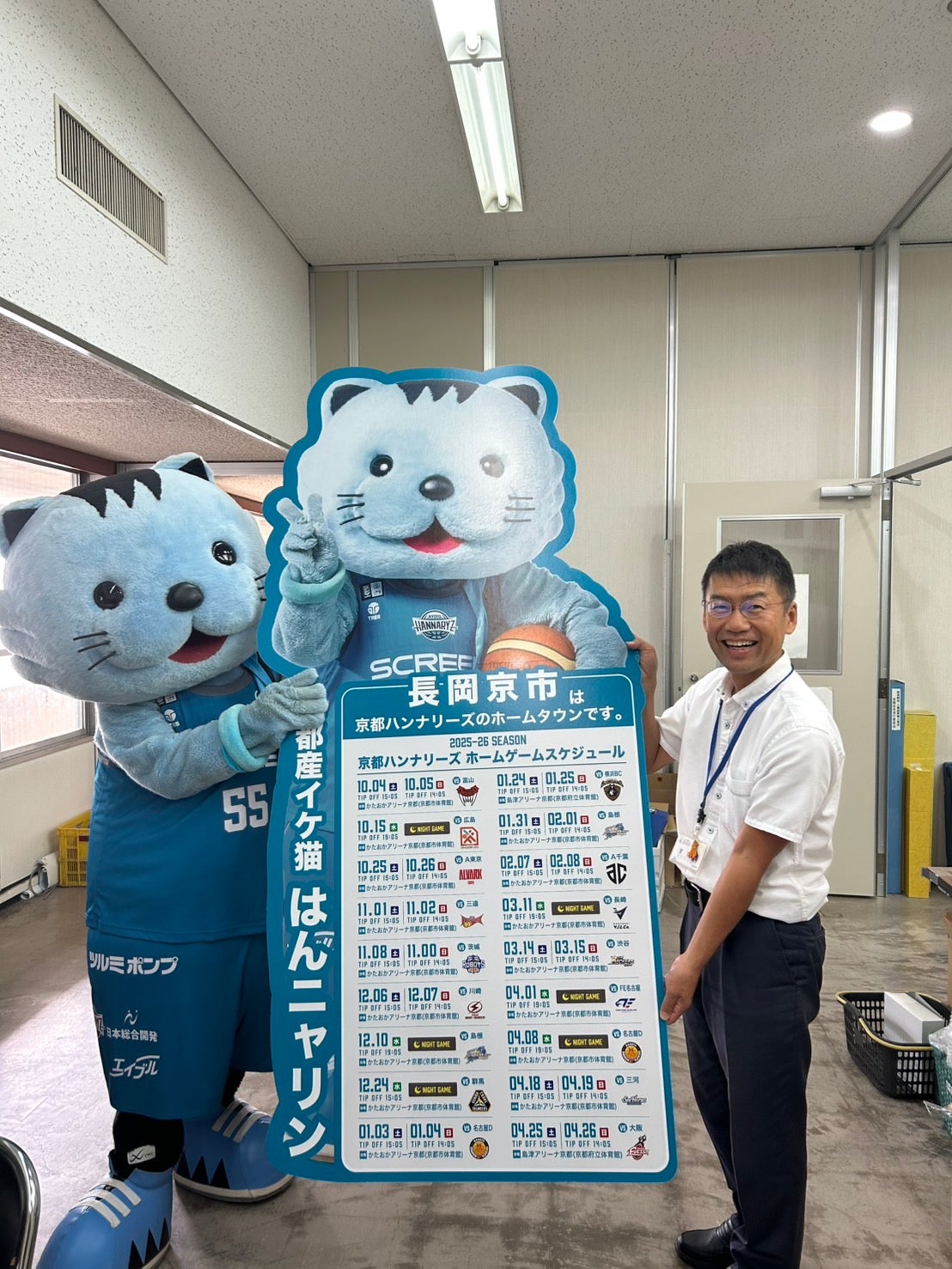 取り組みの一環として、京都ハンナリーズ公式マスコットキャラクター「 はんニャリン」 が各自治体の首長の皆様にご挨拶に伺いました。