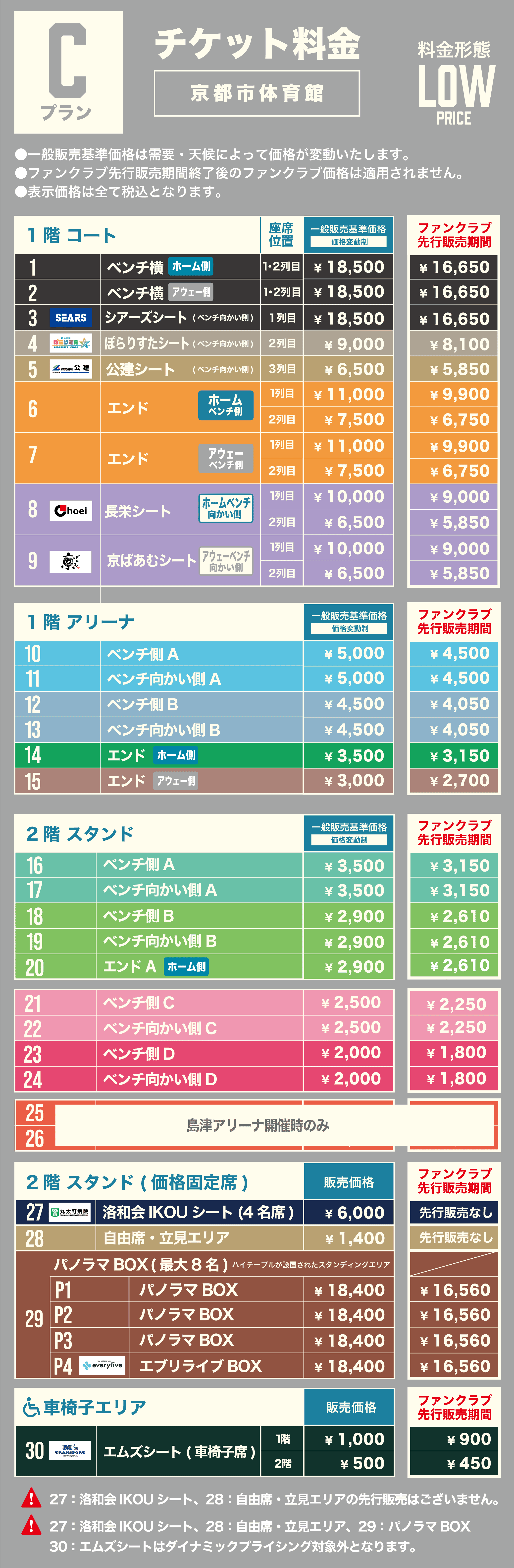 ・2階スタンド見切れ席を通常席として販売いたします。